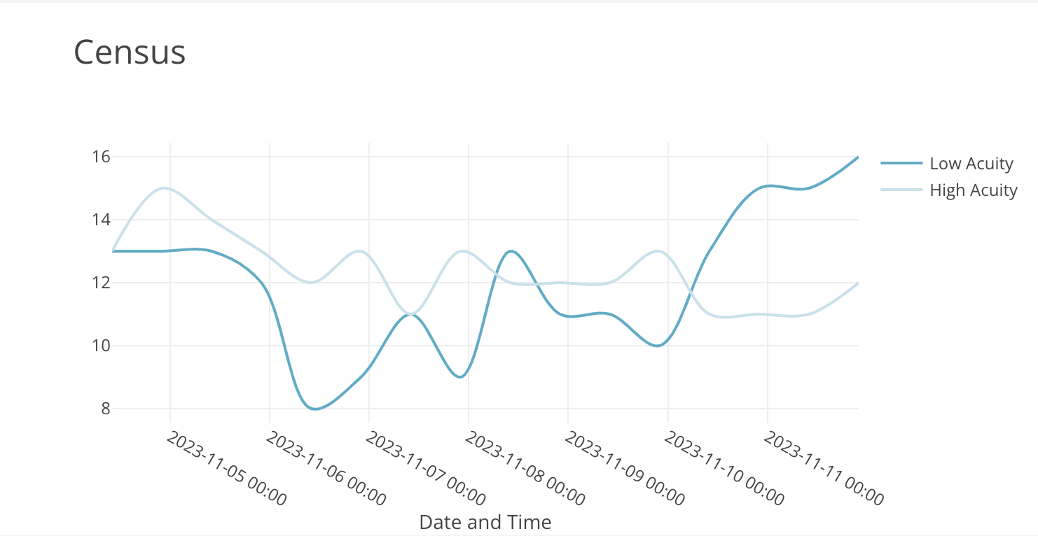 View your patient volume acuity overtime and how it has influenced nursing staffing decisions. Evaluate nursing staffing’s impact on patient flow between departments